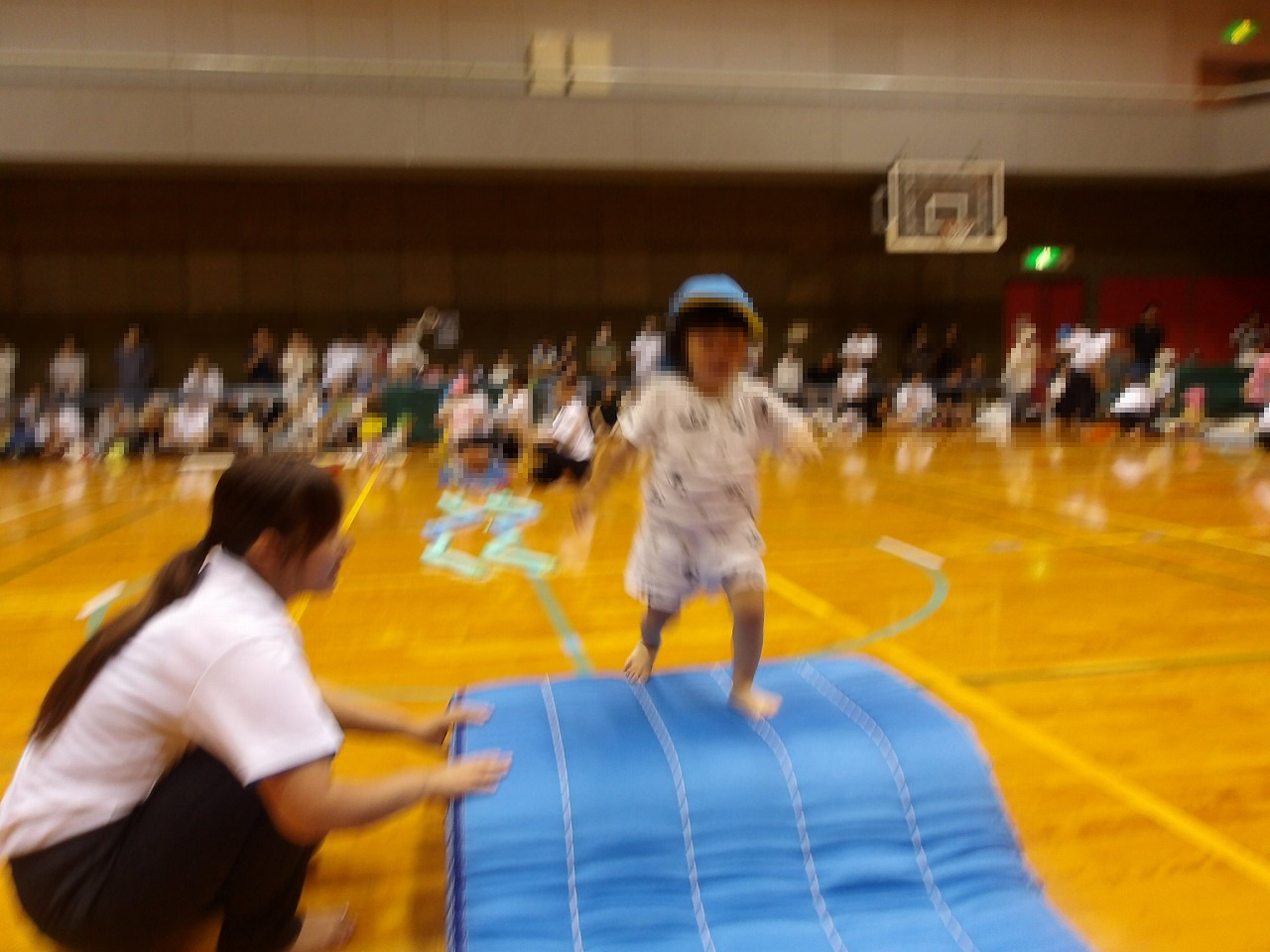 続く競技は「ゆうびんやさん」3種類の動物にお手紙を届けます。上手にお手紙を配達する子ども達でした(^-^)!そして「障害物競走」「玉入れ」と続き前半が終了。