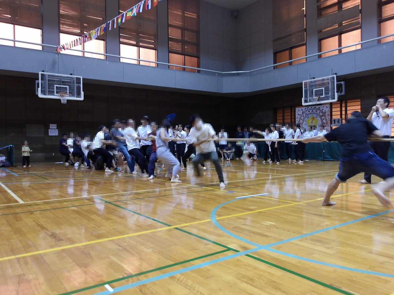 休憩の後は親子競技「回転すしリレー」から始まり、保護者競技「板渡りリレー」「綱引き」と続きます。