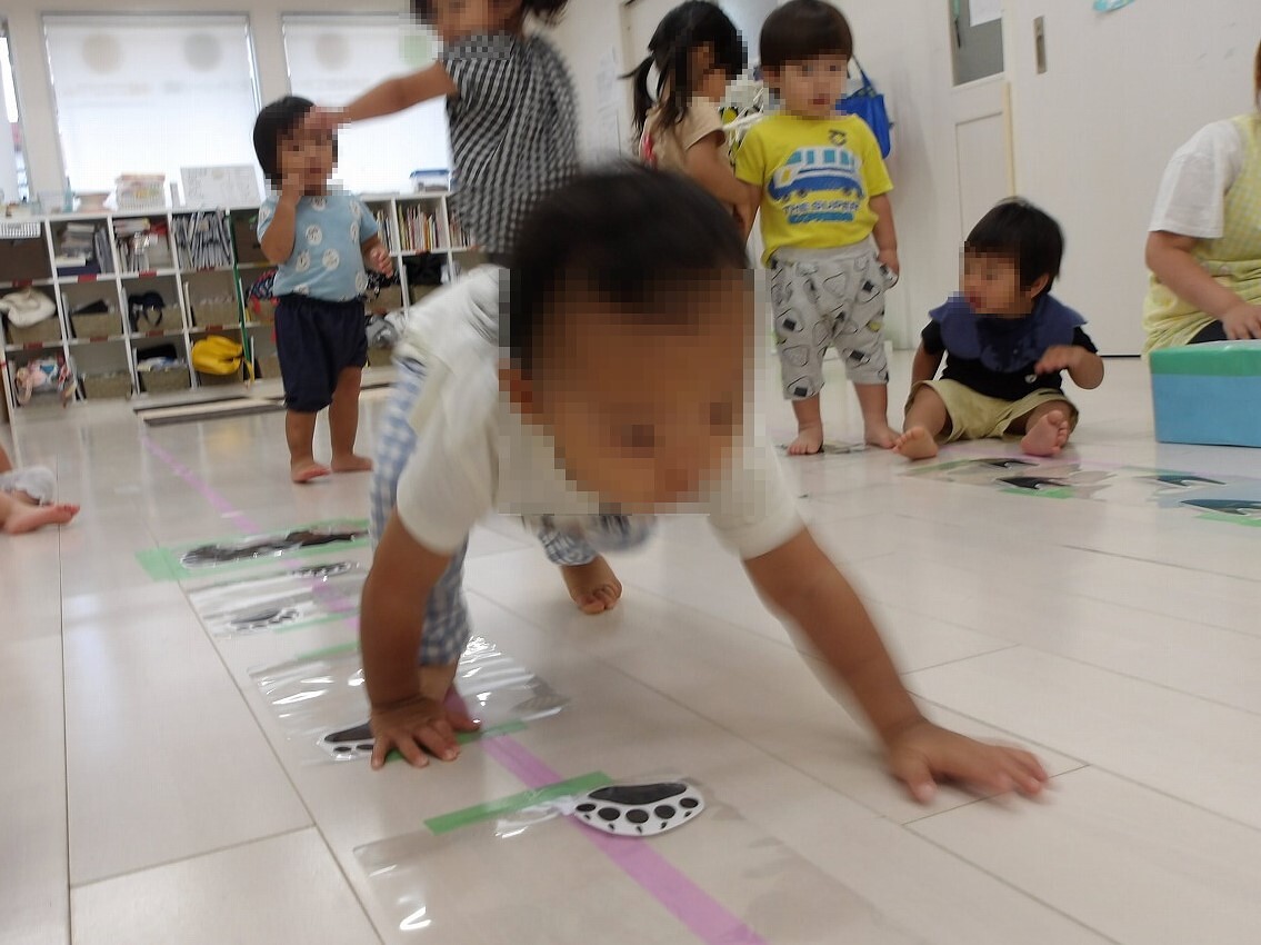 黄組(0歳児)さんも楽しそうにクマさん歩きをしていました(^-^)!
