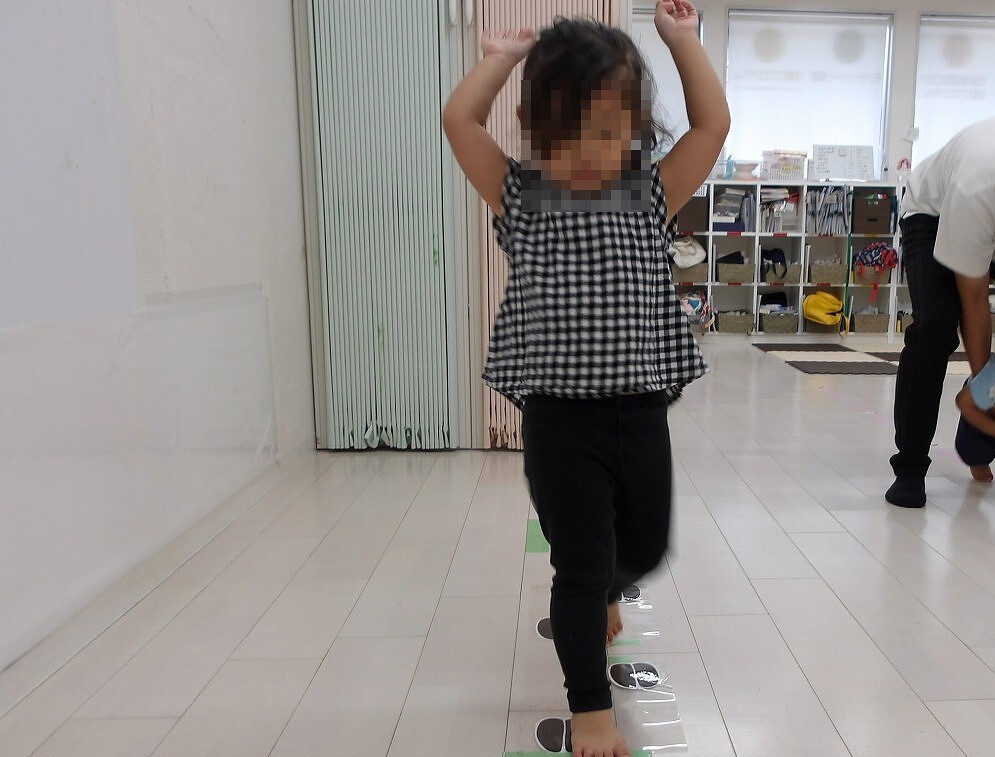 いろんな動物に変身して歩いてみました(^-^)。キリンは両手をまっすぐ頭上に上げつま先歩き、クマは床に膝をつけずに四つん這い歩き、ペンギンはかかとで歩き等をしました。 いろんな動物に変身して歩くことは体幹を強くし、各部位の筋力を向上させ、体全体を器用に、そして繊細に、自分の意図した通りに動かせるようになるんですよ。