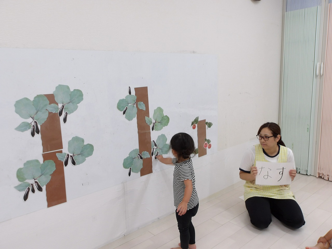 ウェリナ ナーサリースクールのブログ なすびの収穫と文字遊び