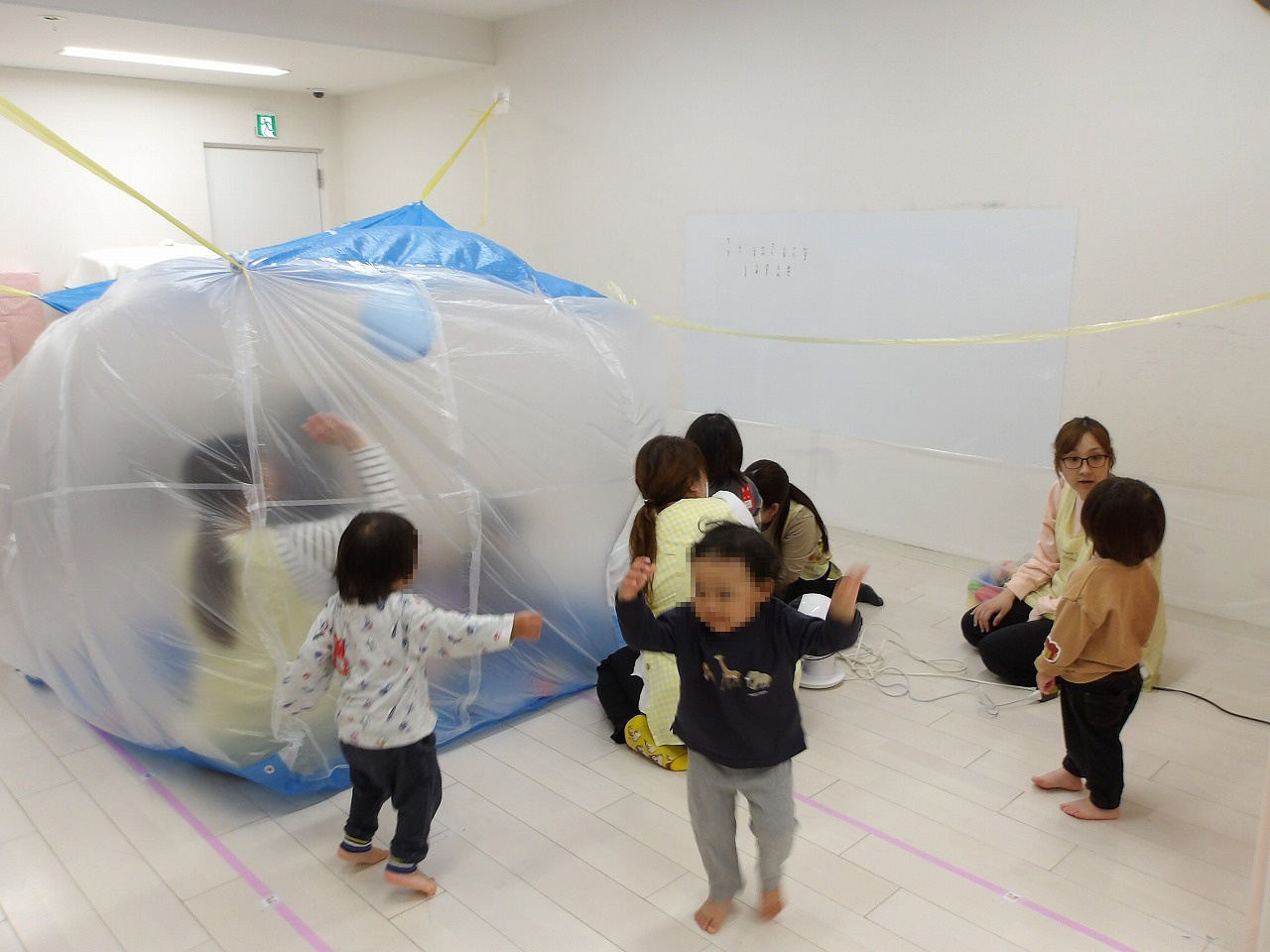 今週もたくさん体を動かしたかして遊んだ子ども達、雨の日は先生がビニールハウスを作ってくれました(^-^)。