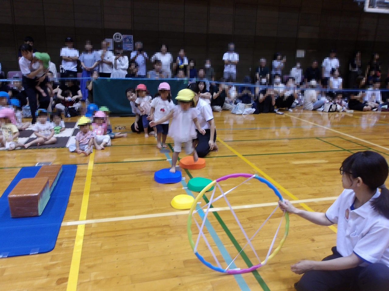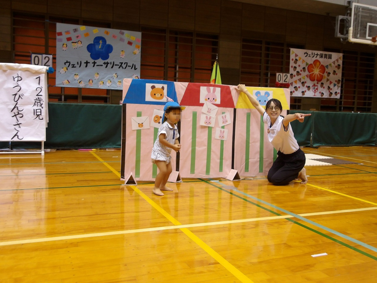 続く競技は「ゆうびんやさん」3種類の動物にお手紙を届けます。上手にお手紙を配達する子ども達でした(^-^)!そして「障害物競走」「玉入れ」と続き前半が終了。