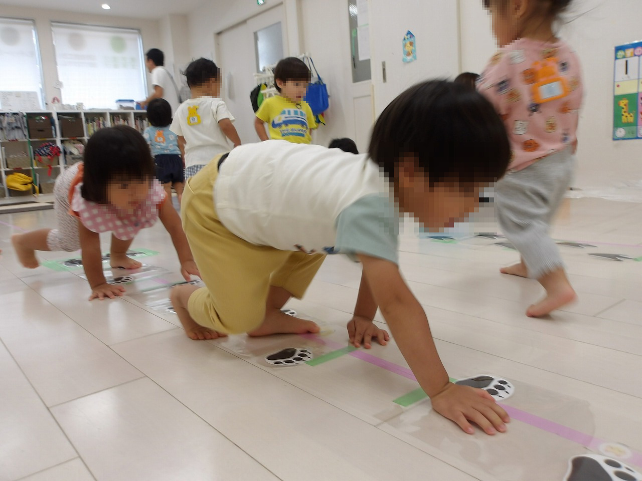 黄組(0歳児)さんも楽しそうにクマさん歩きをしていました(^-^)!
