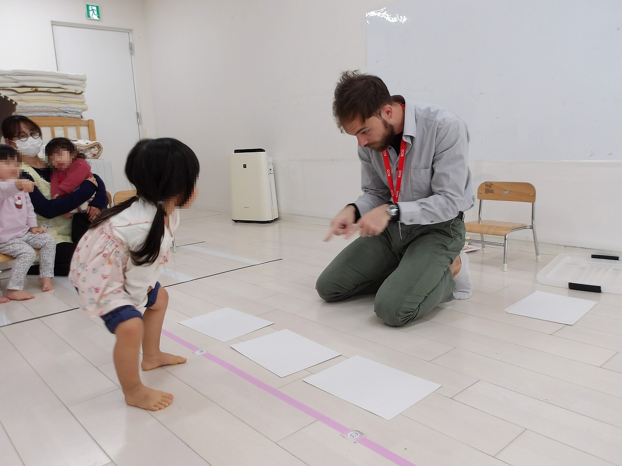 知らない講師に呆気にとられる子ども達もいましたが、コミカルな動きに少しずつM講師に引き付けられ、最後は笑顔いっぱいの子ども達でした(^-^)!