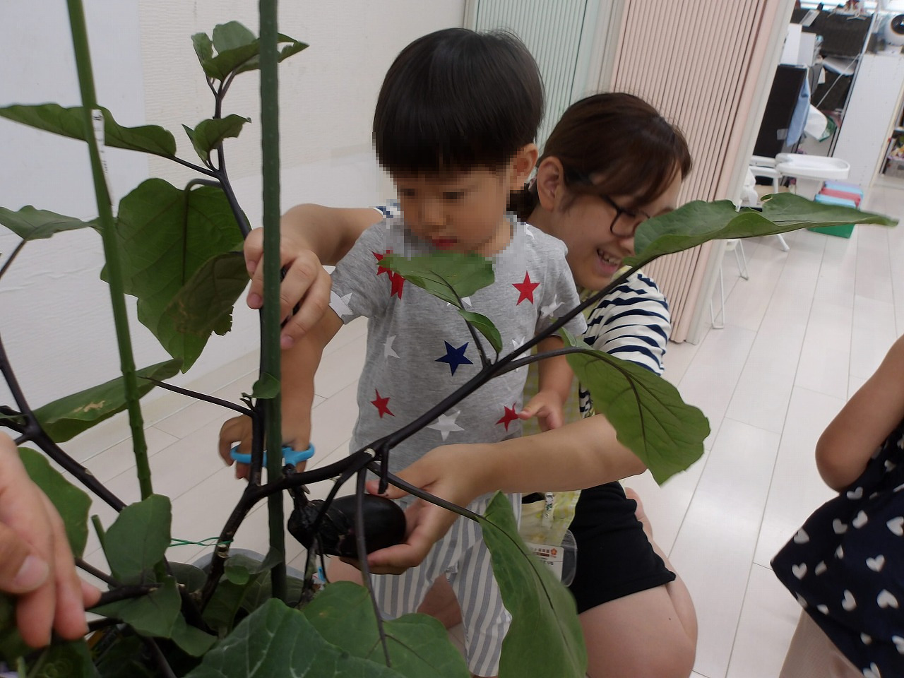 ウェリナ ナーサリースクールのブログ なすびの収穫と文字遊び